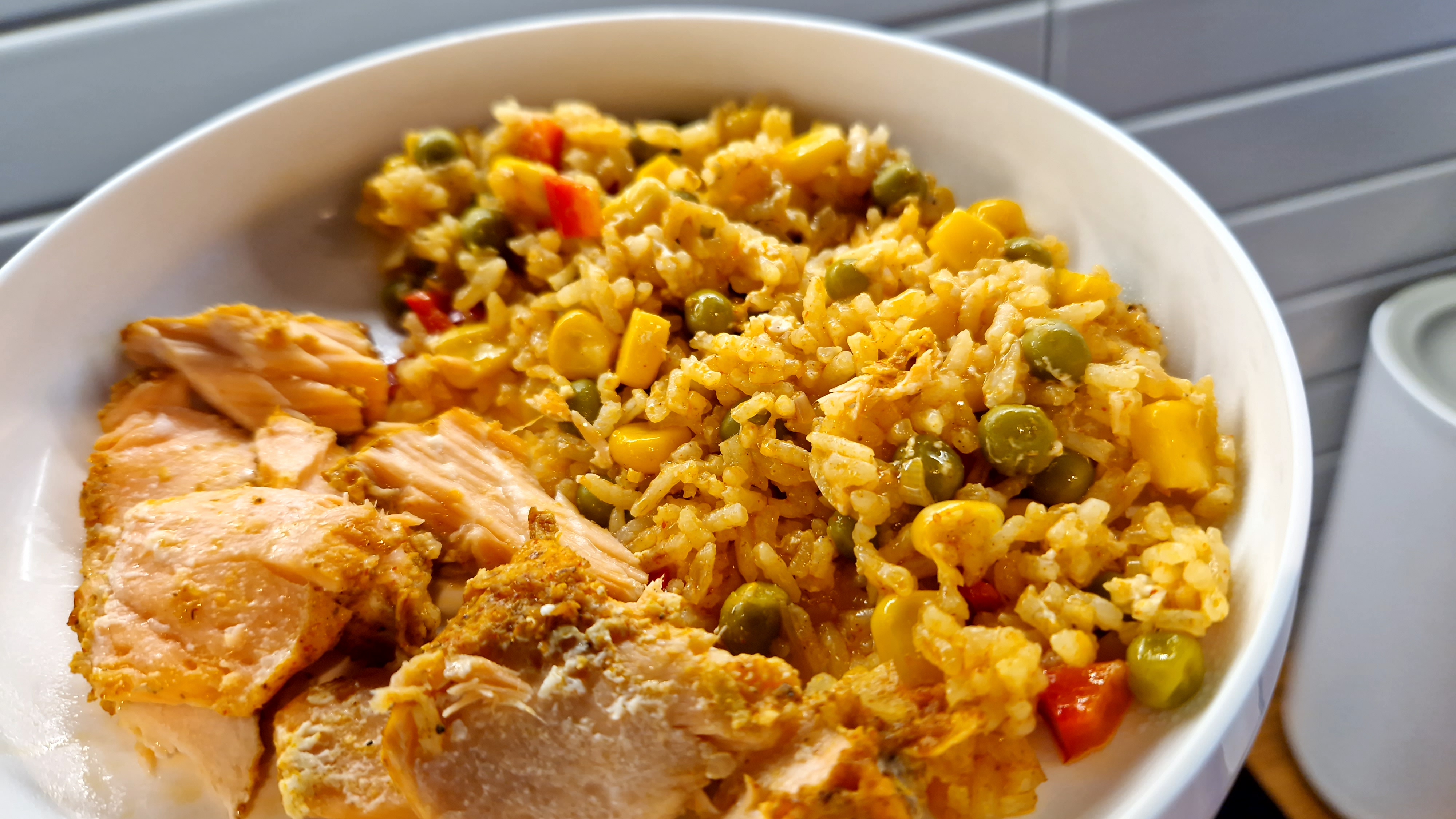 Łosoś pieczony na ryżu po azjatycku